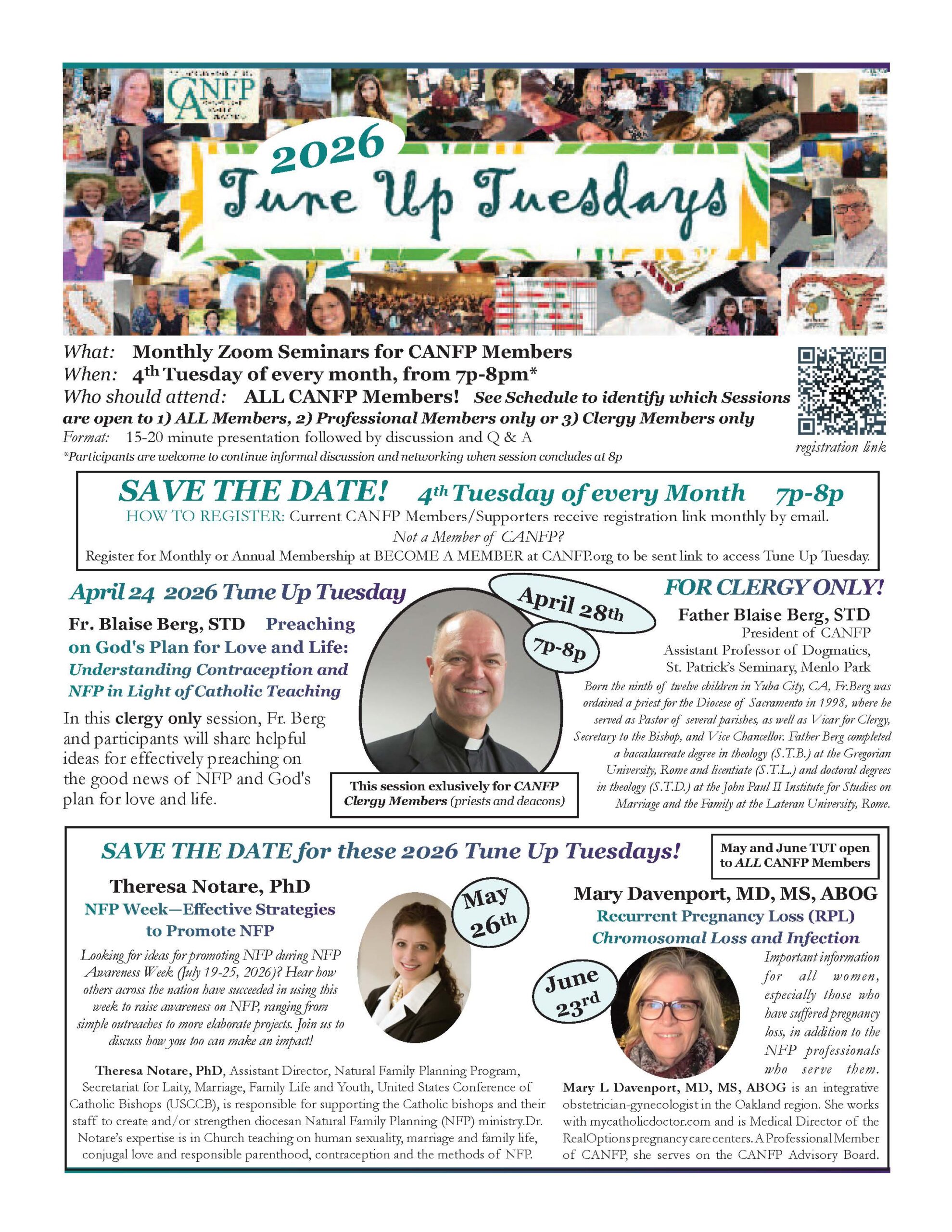Thank you for your indefatigable witness to the benefits and graces of NFP. We are blessed to have you in California! I look forward to continued support and partnership. Blessings to you and your ministry in the new year!